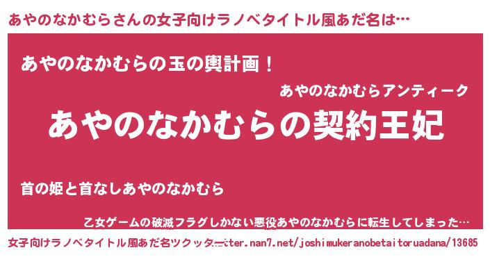| 意味不明あだ名 | 『永久保存あやのなかむら』 |