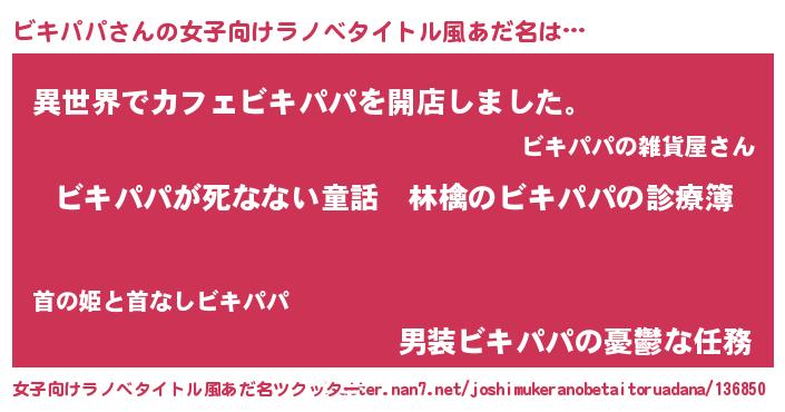 | ヒーロー風カッコイイあだ名 | 『仮面ビキダー』『ネオビキパパ』 |
