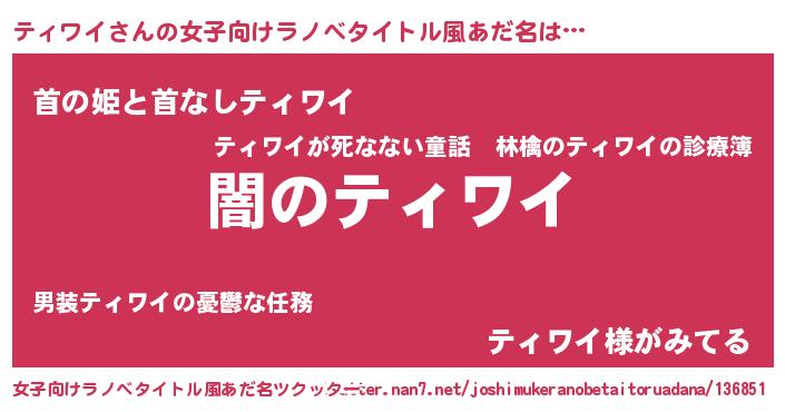 | 男性向けラノベタイトル風あだ名 | 『Re:ティワイから始める異世界生活』 |