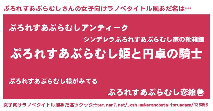 | 男性向けラノベタイトル風あだ名 | 『ぷろれすあぶらむしの憂鬱』 |