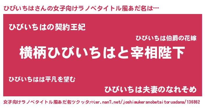 | 男性向けラノベタイトル風あだ名 | 『ひびいちはに滅ぼされるだけの簡単なお仕事です』 |