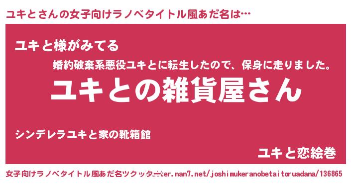 | 男性向けラノベタイトル風あだ名 | 『やはりユキとの青春ラブコメはまちがっている 』 |