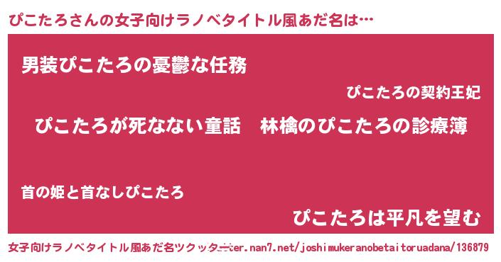 | 男性向けラノベタイトル風あだ名 | 『魔弾の王とぴこたろ』 |