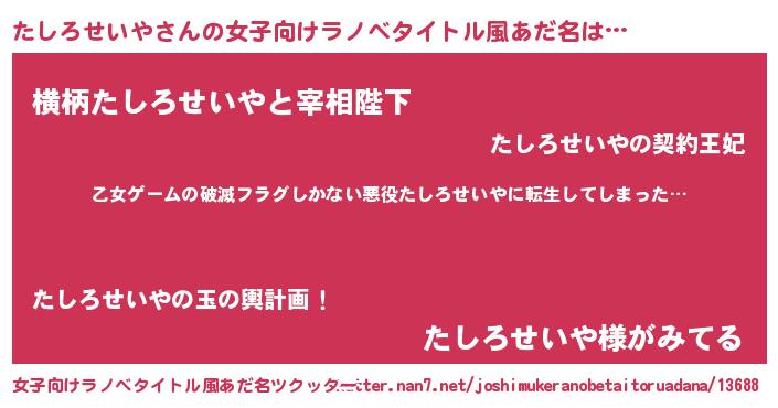 | 意味不明あだ名 | 『住所不定無職たしろせいや(7歳)』 |