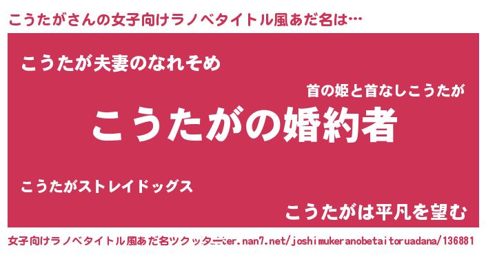| 意味不明あだ名 | 『こうたがフォーエバー』『自称こうたが』 |