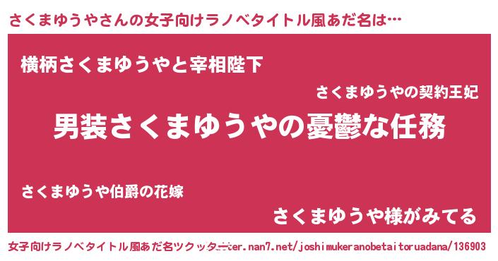 | 男性向けラノベタイトル風あだ名 | 『うちのさくまゆうやが世界を掌握している!』 |