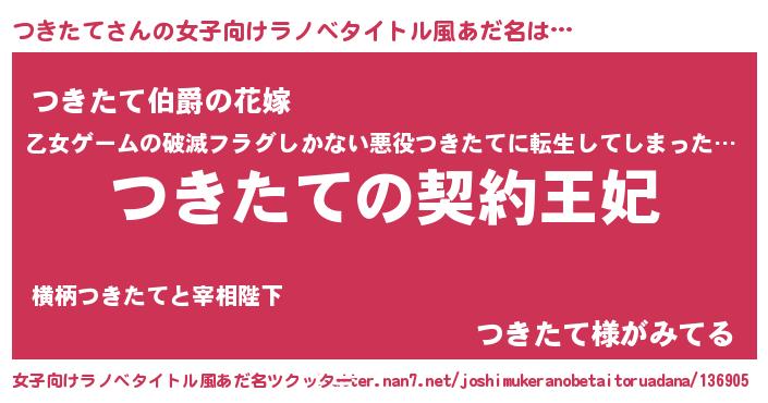 | 男性向けラノベタイトル風あだ名 | 『つきたてという概念が存在しない退屈な世界 』 |