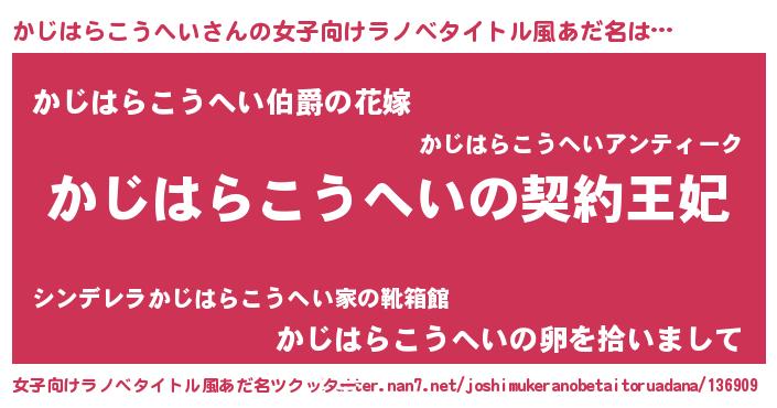| 男性向けラノベタイトル風あだ名 | 『かじはらこうへいという概念が存在しない退屈な世界 』 |