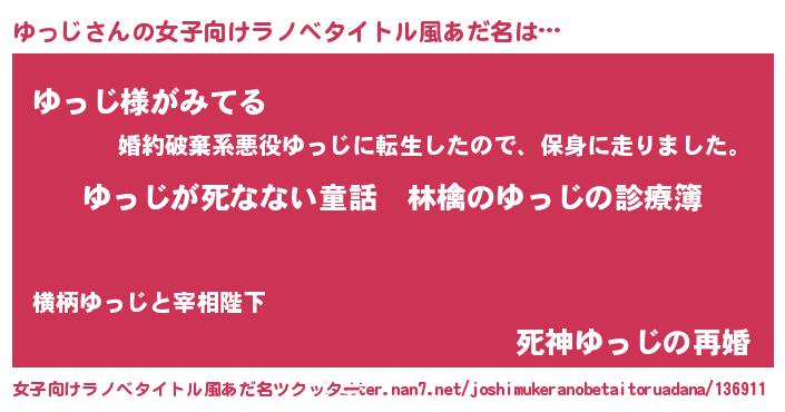 | 意味不明あだ名 | 『住所不定無職ゆっじ(59歳)』 |