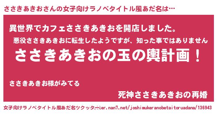 | 男性向けラノベタイトル風あだ名 | 『転生したらささきあきおだった件』 |