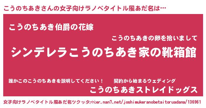 | 男性向けラノベタイトル風あだ名 | 『緋弾のコウノチアキ』 |
