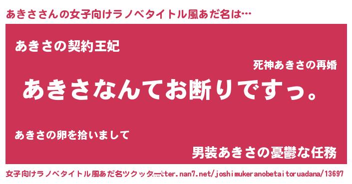 | 意味不明あだ名 | 『自称あきさ』『永久保存あきさ』 |