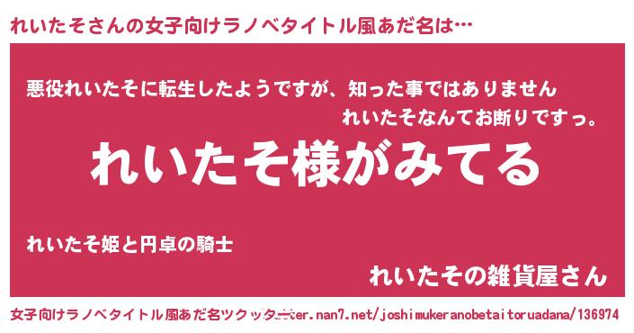 | 男性向けラノベタイトル風あだ名 | 『れいたその嫁は女の子じゃないと思った?』 |
