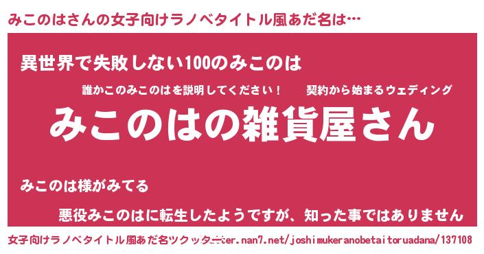 | 男性向けラノベタイトル風あだ名 | 『やはりみこのはの青春ラブコメはまちがっている 』 |