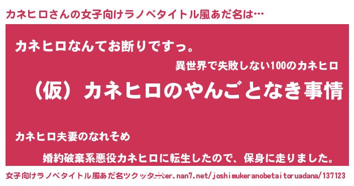 | ヘコむあだ名 | 『カネもー』『カネヒロ(小並感)』 |