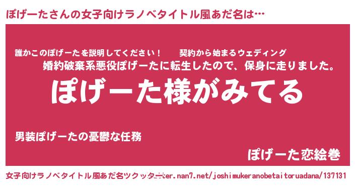 | 意味不明あだ名 | 『とにかく怪しいぽげーた』 |