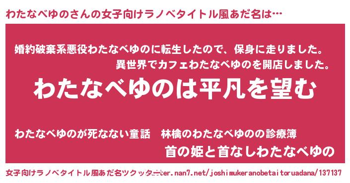 | 男性向けラノベタイトル風あだ名 | 『ダンジョンにわたなべゆのを求めるのは間違っているだろうか』 |