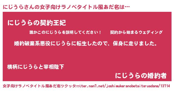 | 男性向けラノベタイトル風あだ名 | 『ニジウラスレイヤー』 |