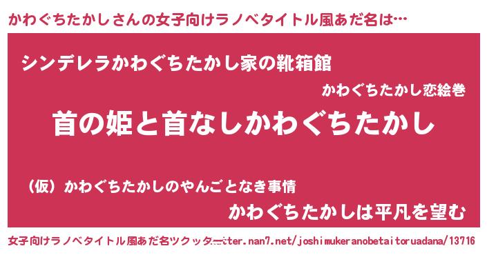 | 肩書あだ名 | 『かわぐちたかしマネージャー』 |