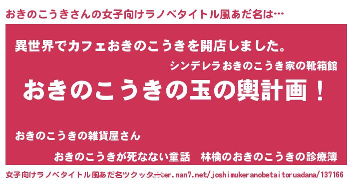 | ヒーロー風カッコイイあだ名 | 『ネオオキノコウキ』『仮面オキダー』 |