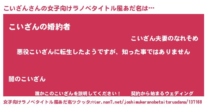 | 男性向けラノベタイトル風あだ名 | 『この素晴らしい世界にこいざんを!』 |