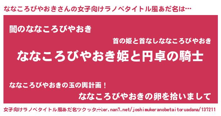 | 男性向けラノベタイトル風あだ名 | 『ナナコロビヤオキアートオンライン』 |