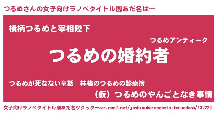 | 男性向けラノベタイトル風あだ名 | 『うちの娘の為ならば、俺はもしかしたらつるめも倒せるかもしれない。』 |