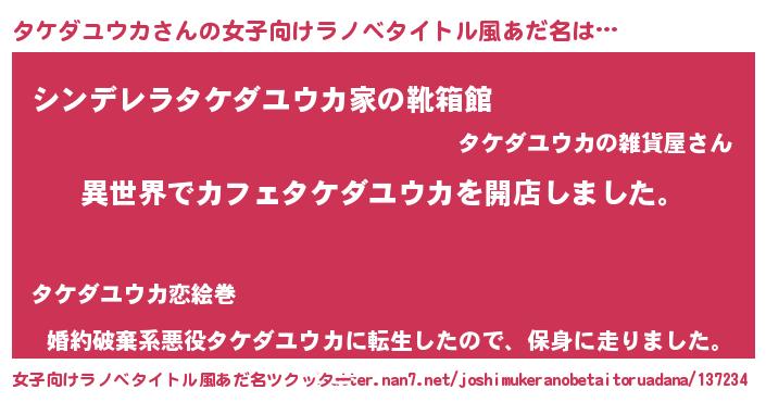 | 男性向けラノベタイトル風あだ名 | 『誰もが恐れるあのタケダユウカが、ぼくの専属メイドになるようです。』 |