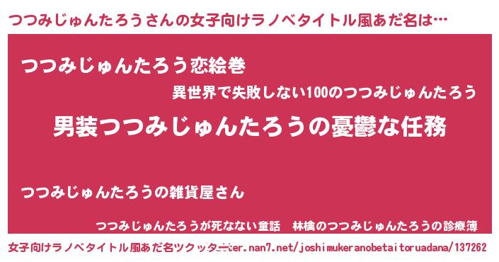 | 男性向けラノベタイトル風あだ名 | 『うちのつつみじゅんたろうが世界を掌握している!』 |