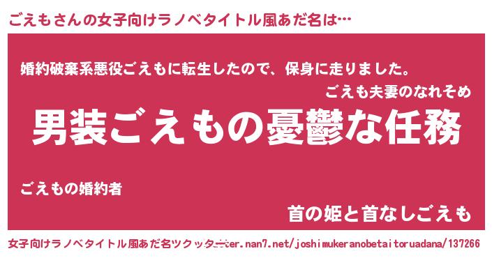 | 男性向けラノベタイトル風あだ名 | 『うちのごえもが世界を掌握している!』 |