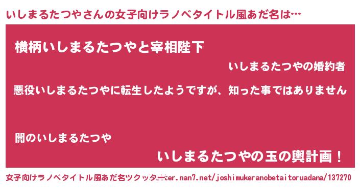 | 胡散臭い通販商品みたいなあだ名 | 『あなたにだけ特別に提供する限定10本のレアな日本酒…その名も「いしまるたつや」』 |