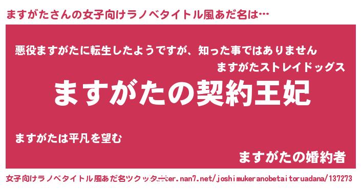 | 男性向けラノベタイトル風あだ名 | 『ますがたという概念が存在しない退屈な世界 』 |