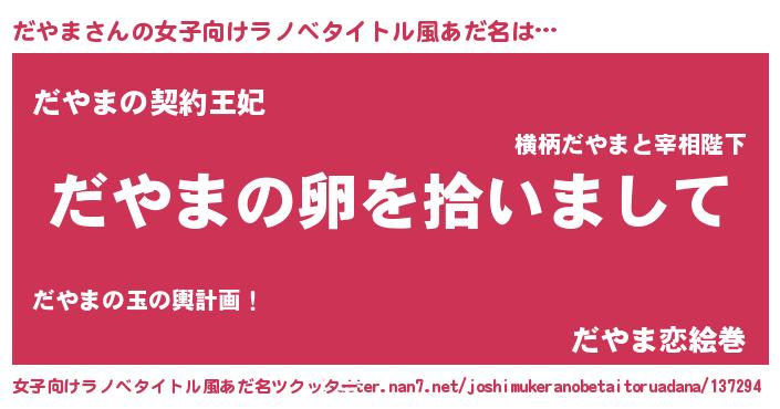 | ヘコむあだ名 | 『だや太郎』『だやま(小並感)』 |