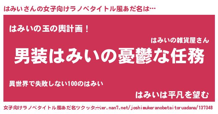 | ヒーロー風カッコイイあだ名 | 『炎刃騎士ハミ』『ウルトラはみいマン』 |