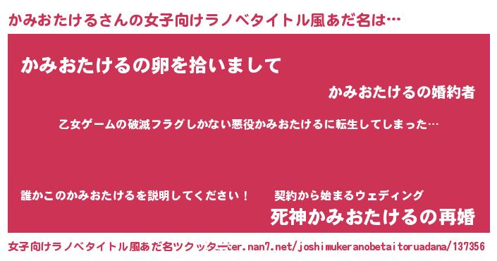 | 男性向けラノベタイトル風あだ名 | 『この素晴らしい世界にかみおたけるを!』 |