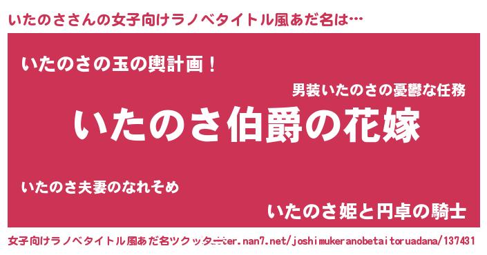 | 男性向けラノベタイトル風あだ名 | 『やはりいたのさの青春ラブコメはまちがっている 』 |