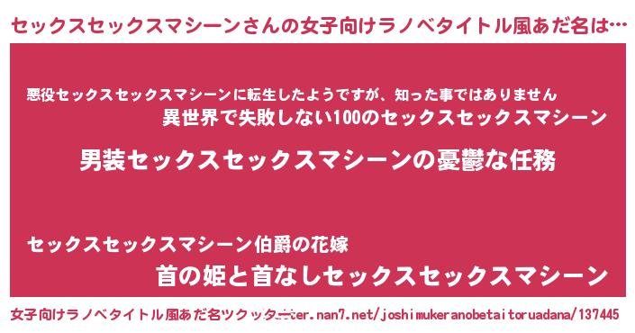| 男性向けラノベタイトル風あだ名 | 『うちのセックスセックスマシーンが世界を掌握している!』 |