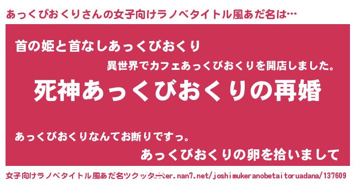 | 男性向けラノベタイトル風あだ名 | 『ノーゲーム・ノーアックビオクリ』 |