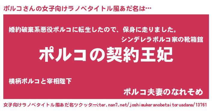 | 胡散臭い通販商品みたいなあだ名 | 『来世でも幸せになれる水素水…その名も「ポルコ」』 |