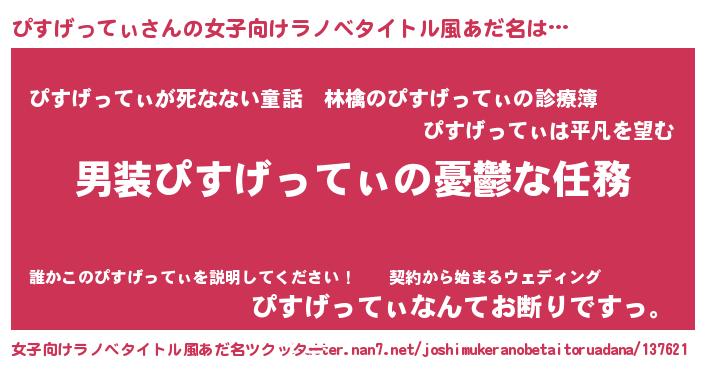 | 意味不明あだ名 | 『住所不定無職ぴすげってぃ(39歳)』 |