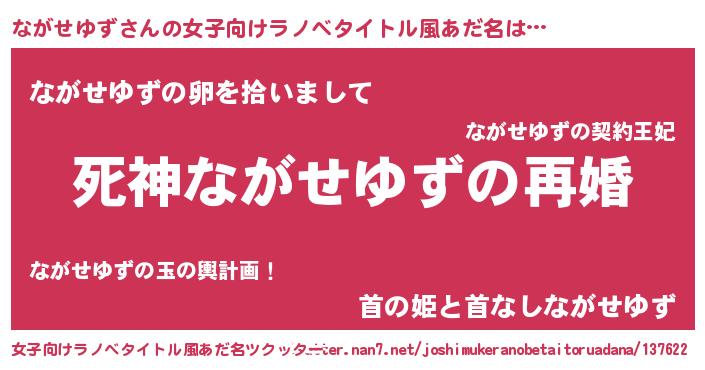 | 男性向けラノベタイトル風あだ名 | 『ノーゲーム・ノーナガセユズ』 |