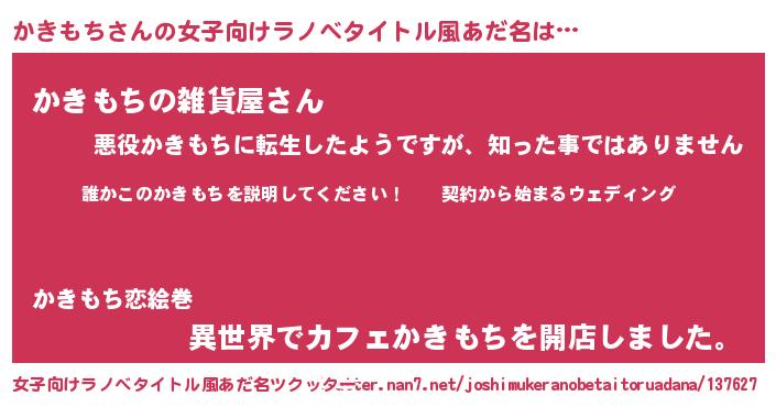 | 男性向けラノベタイトル風あだ名 | 『カキモチアートオンライン』 |