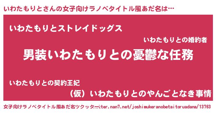 | 男性向けラノベタイトル風あだ名 | 『うちのいわたもりとが世界を掌握している!』 |