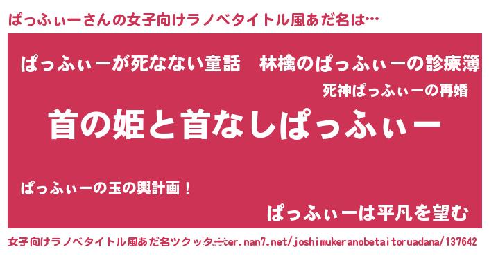 | 胡散臭い通販商品みたいなあだ名 | 『ハリウッド女優が絶賛した100年もののヴィンテージワイン…その名も「ぱっふぃー」』 |