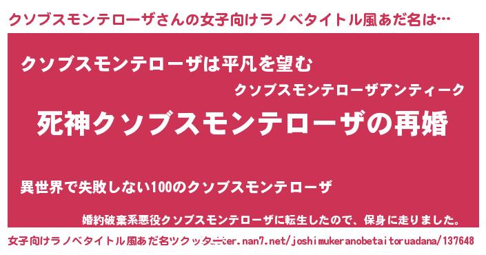 | ヒーロー風カッコイイあだ名 | 『慈愛の使者クソブスモンテローザ』 |