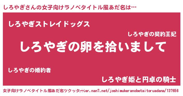 | 男性向けラノベタイトル風あだ名 | 『しろやぎの嫁は女の子じゃないと思った?』 |