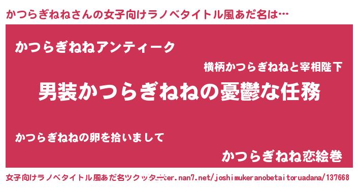 | 意味不明あだ名 | 『自称かつらぎねね』 |