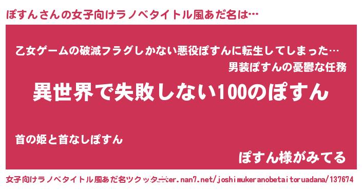 | 意味不明あだ名 | 『永久保存ぽすん』『自称ぽすん』 |
