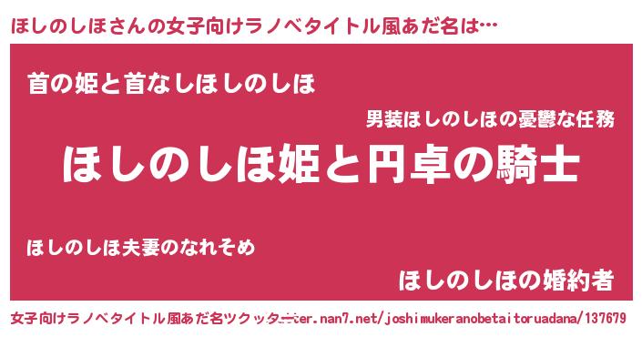 | ファンタジー風あだ名 | 『ホシフェル』『エターナルホシノシホー』 |