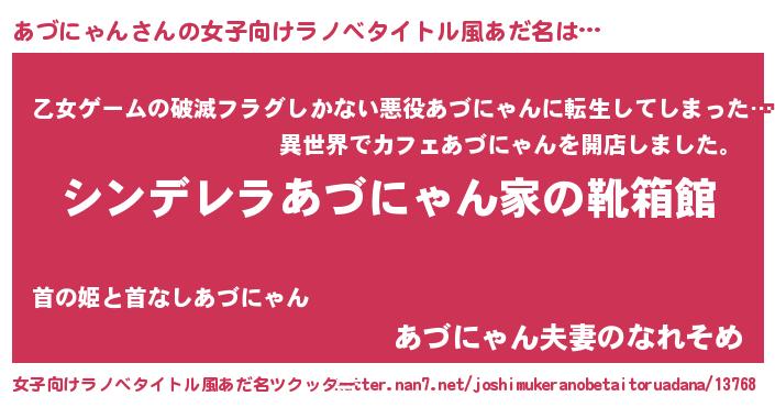 | 意味不明あだ名 | 『住所不定無職あづにゃん(9歳)』 |